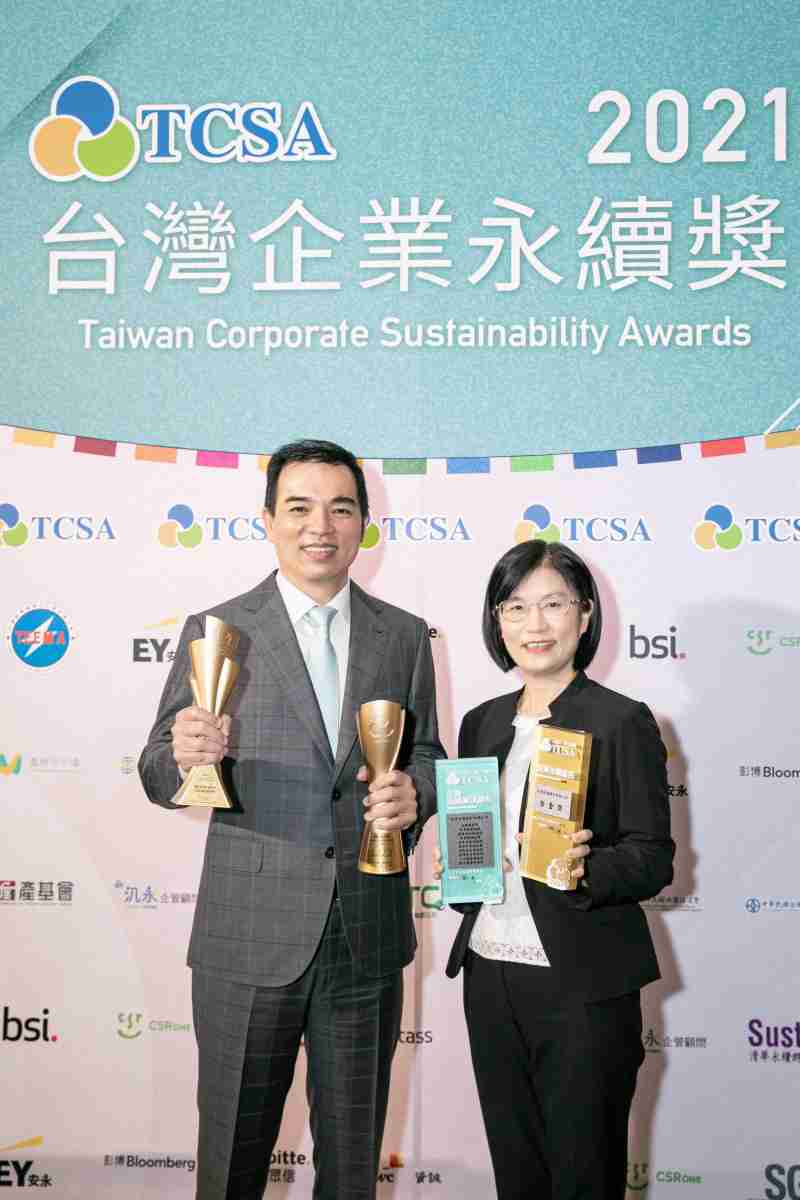 达在台湾永续奖所评比环境、、社会、、、治理等各面向的永续绩效均获高度肯定 (左:www.z6.com光电总经理暨营运长柯富仁,,,右:www.z6.com光电永续长古秀华)