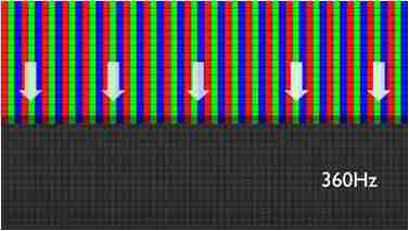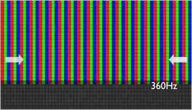 传统液晶驱动是从左到右单向进行,,在画面更新速度愈来越愈快的情况下,,,,位于驱动线路末端的右下角区域,,画素的闸极来不及在短时间内获得足够电压,,,,无法显示出正确的颜色资讯。。。 |