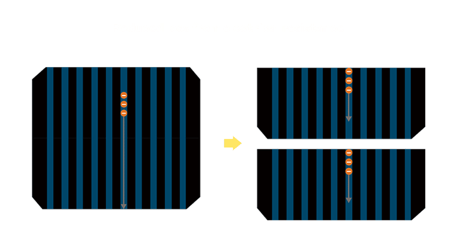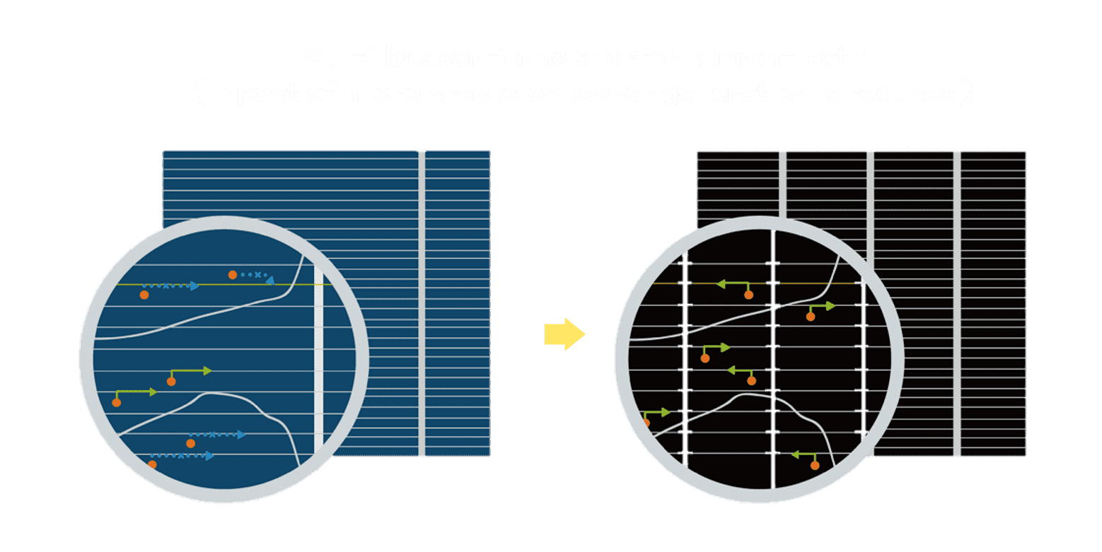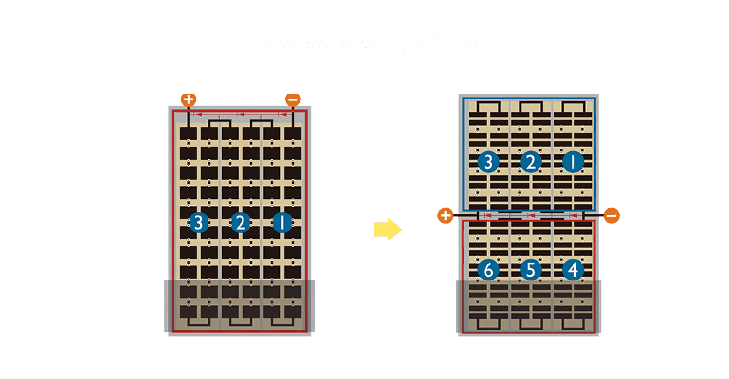 - 结合半切电池,,降低遮阴影响、、提升模组抗隐裂能力、、、并减少电阻损耗,,,进一步提升模组发电效能。。。。